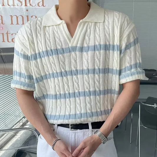 Knitted Polo Shirt with Korean Aesthetics